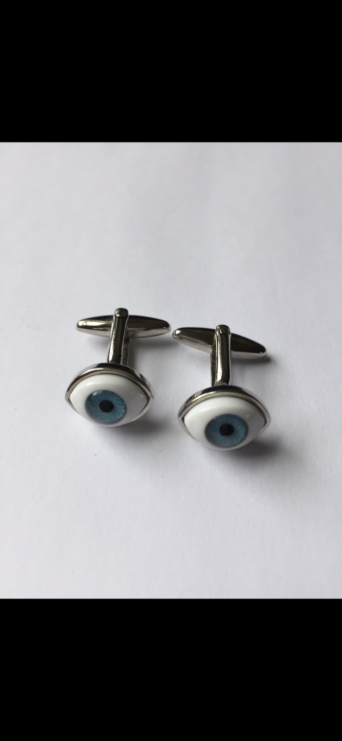 Men’s cufflinks, blue eyes designed enamel cufflinks • Made in UK.