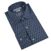 100% cotton printed blue shirt • slim body fit • 1 button neck classic collar • 1 button long sleeve cuff • made in Italy.