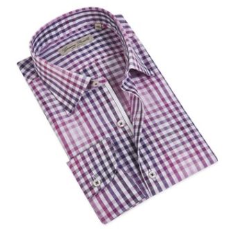 100% popeline cotton blue shirt • regular body fit • inside collar and buttonholes fabric contrast • 1 button neck classic collar • 1 button long sleeve cuff • made in Italy.