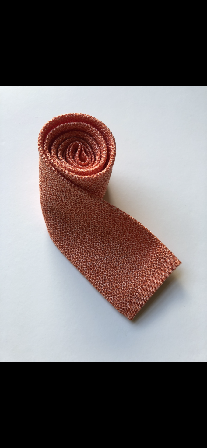 Silk knit tie, a great orange colored knitted silk tie for aficionados • 100% silk • 2.5” width • 154cm length • dry clean only • made in Italy.